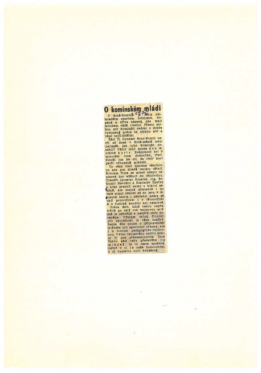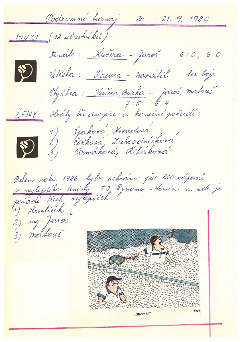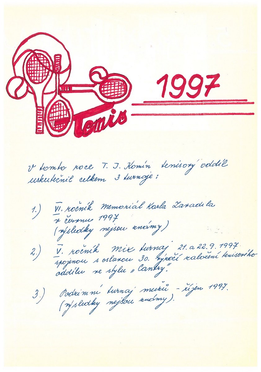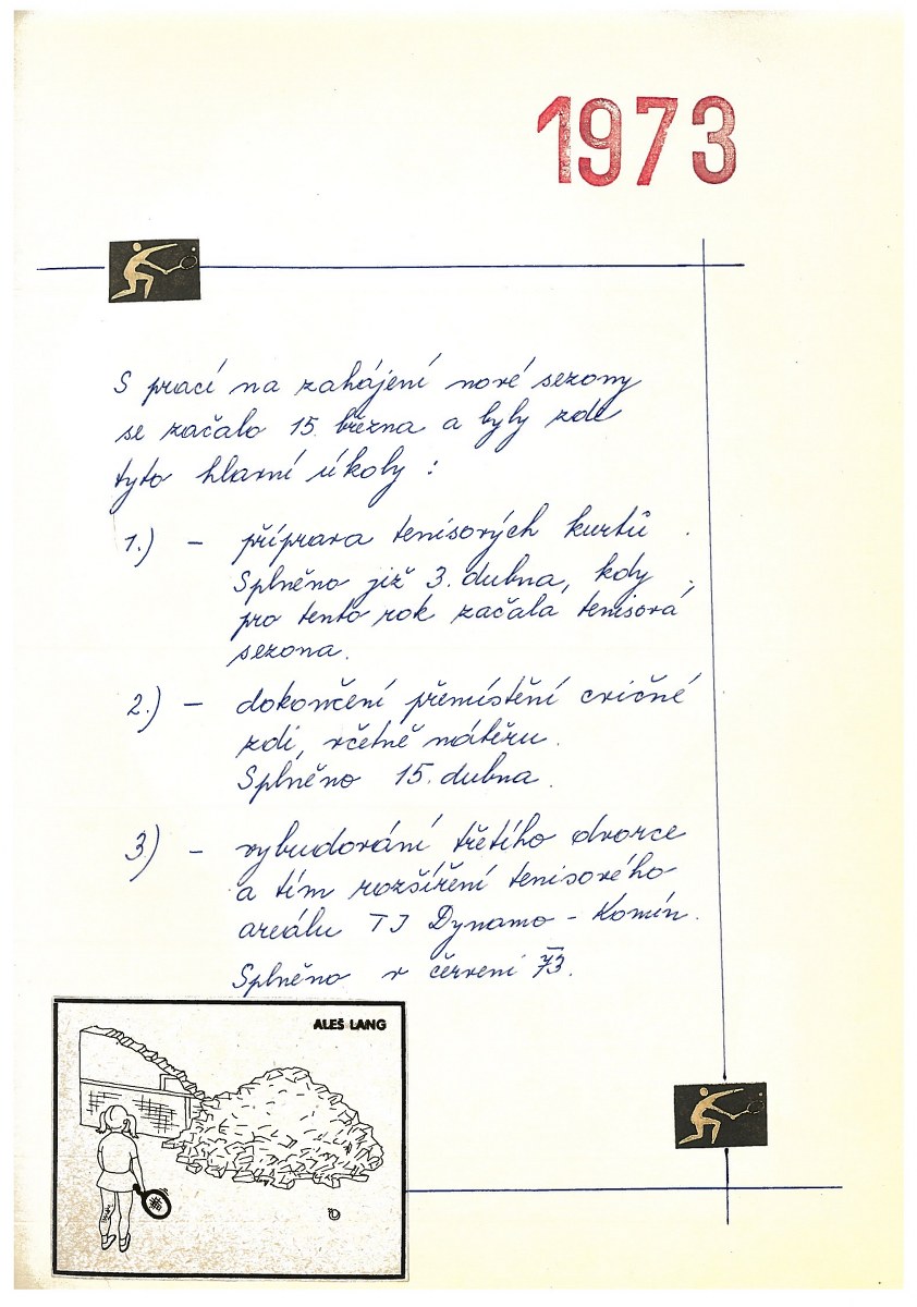 Areál TJ Komín byl založen v roce 1967, kdy vzniknul oddíl tenisu a začala se budovat členská základna. Naše TJ patří mezi "pilířové" sportovní spolky v rámci městké části Brno-Komín. Níže se můžete podívat na kroniku TJ z let 1967-2003.