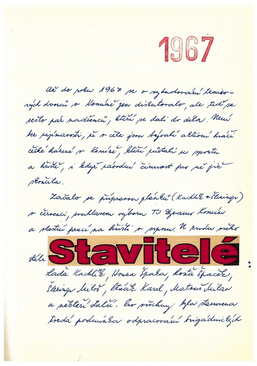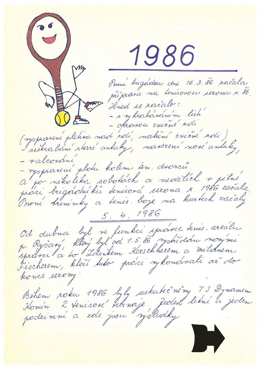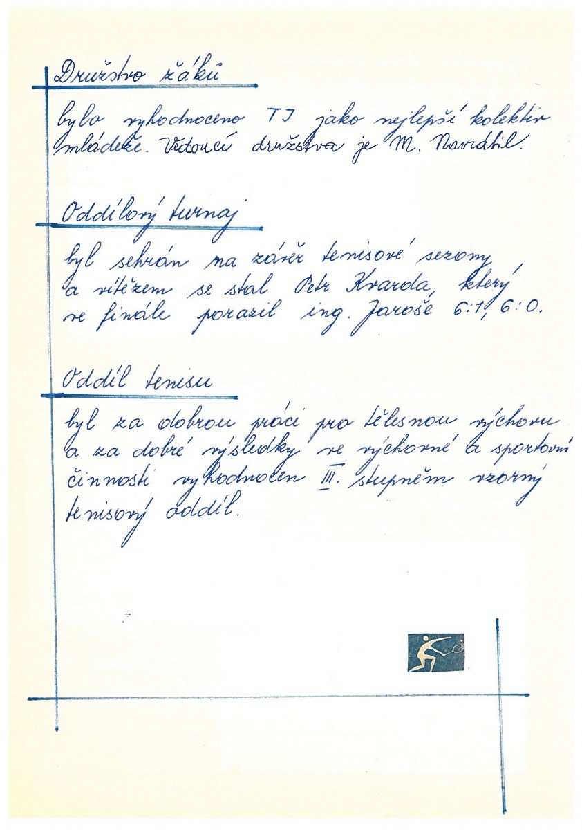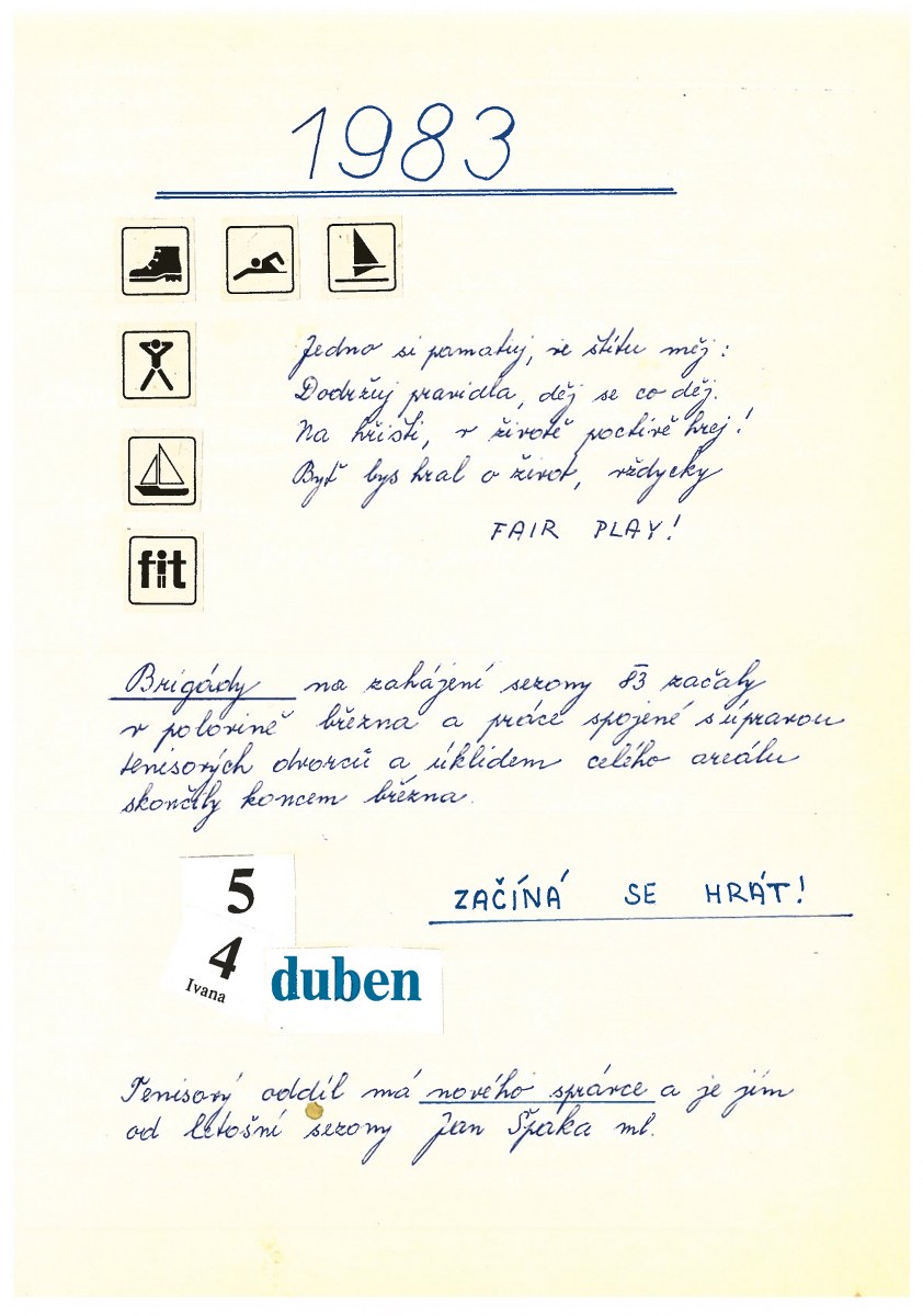 Areál TJ Komín byl založen v roce 1967, kdy vzniknul oddíl tenisu a začala se budovat členská základna. Naše TJ patří mezi "pilířové" sportovní spolky v rámci městké části Brno-Komín. Níže se můžete podívat na kroniku TJ z let 1967-2003.